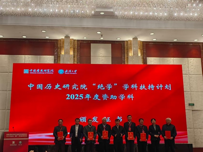 2025年12月22-23日,全国主要史学研究与教学机构联席会议2025年会暨“绝学”学科建设研讨会,在武汉召开。会议由中国历史研究院、武汉大学共同主办。会议开幕式上,举行了中国历史研究院“绝学”学科扶持计划2024、2025年度资助学科证书颁发仪式。吉林大学申报的“中国古文字学”,入选2025年度资助学科。吴振武教授作为学科负责人,参加仪式并接受证书。此项突破不仅是学院学科建设的又一标志性成果,更标志着学院“十五五”学...