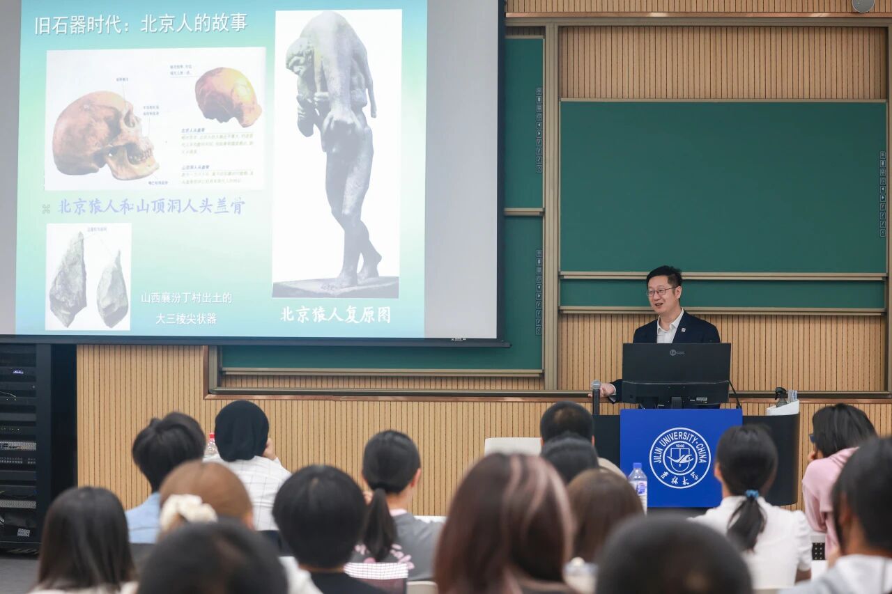 段天璟结合自身丰富的田野考古实践经历,以及历届吉大考古学子的真实故事,生动展现了田野考古工作的魅力与学术责任。他指出,一代代光荣的吉大考古人正是在田野中学会“以物论史、透物见人”,体会“代死人说话,把死人说活”的学术使命与探索乐趣。这些真实而鲜活的故事,不仅让同学们直观理解考古学的研究方法,更深刻感受到这一学科所承载的文化担当与科学温度。