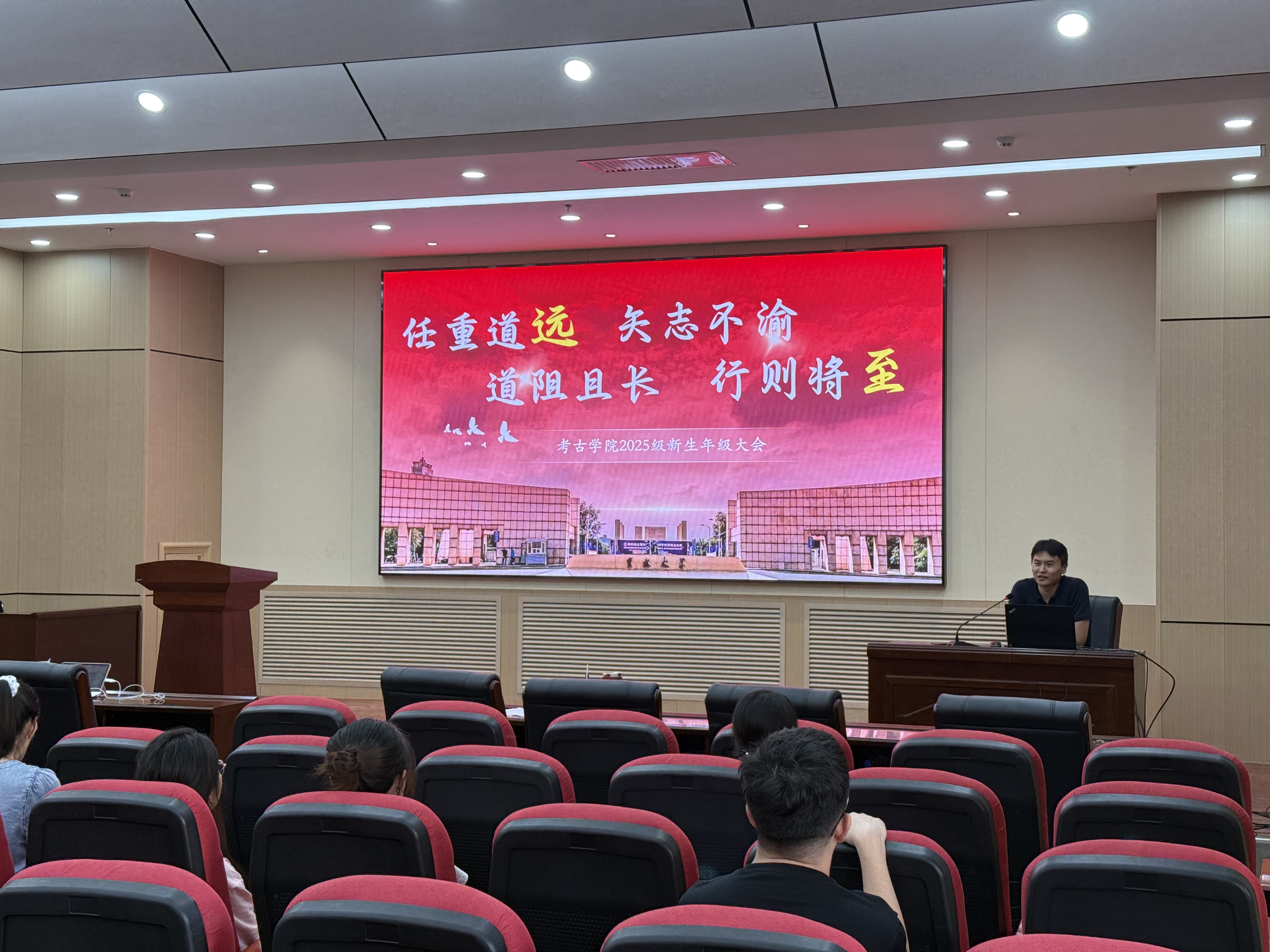 2025年9月2日,考古学院2025级研究生新生年级大会在正新楼一楼报告厅顺利召开展。本次大会由考古学院研究生辅导员依德日贡主讲,全体2025级研究生新生参加。