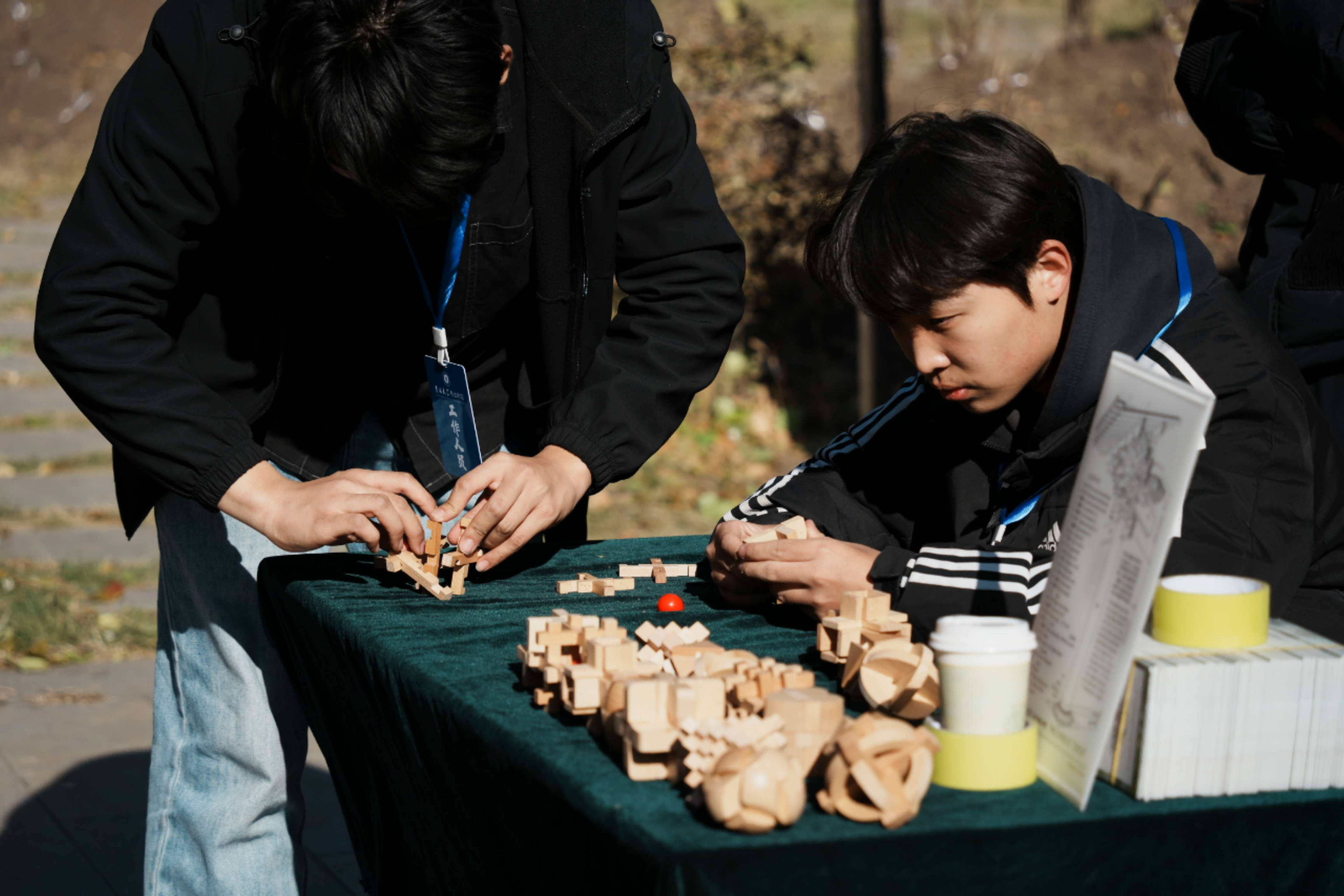 “奇巧结构”环节人气高涨——榫卯模型的搭建考验空间思维,鲁班锁的拆装充满挑战趣味,古人构筑建筑的力学巧思,在动手实践中悄然传递。
