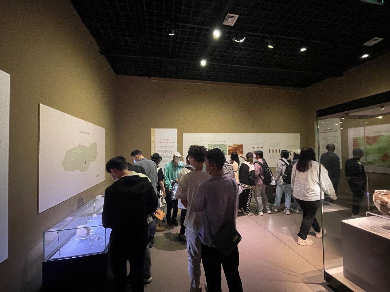 9月26日下午,实习师生来到了实践活动的第一站:运城市博物馆。这是大家第二次来到运城市博,此次前来主要是参观学习运城市博物馆新举办的展览:“与华相宜——晋南西阴文化特展”、“古河东考古进行时——十三五考古成果展”以及“忠义神武——解州关帝庙藏历代关公文物珍品展”。在调研实践过程中,考古学院学生与游览观众热情交流,向博物馆有关工作人员提出问询与建议,感受到了运城丰厚的人文底蕴及淳朴民风。